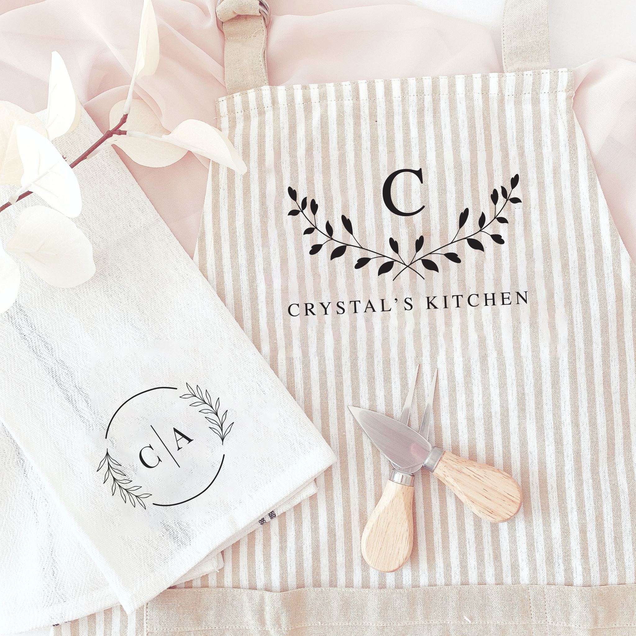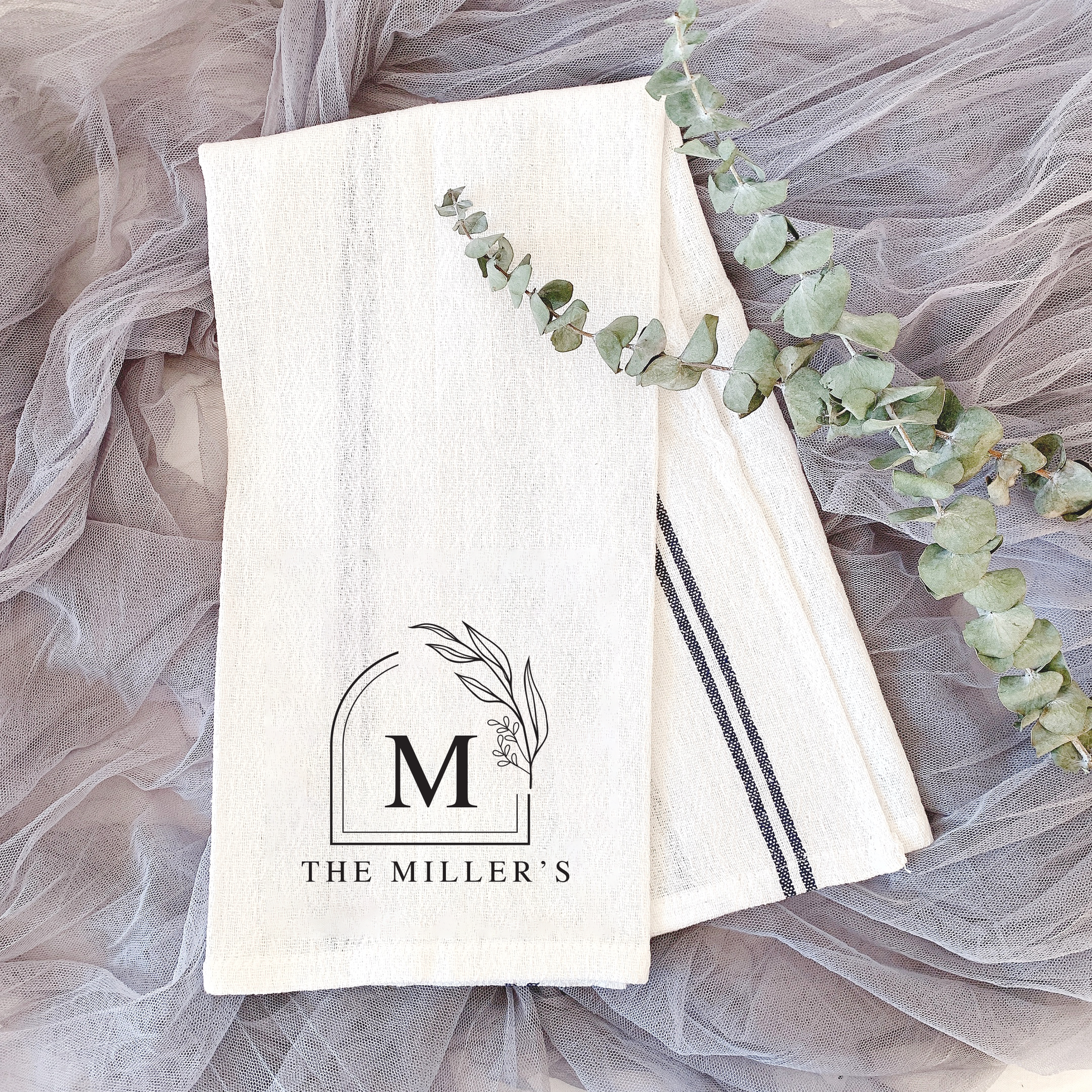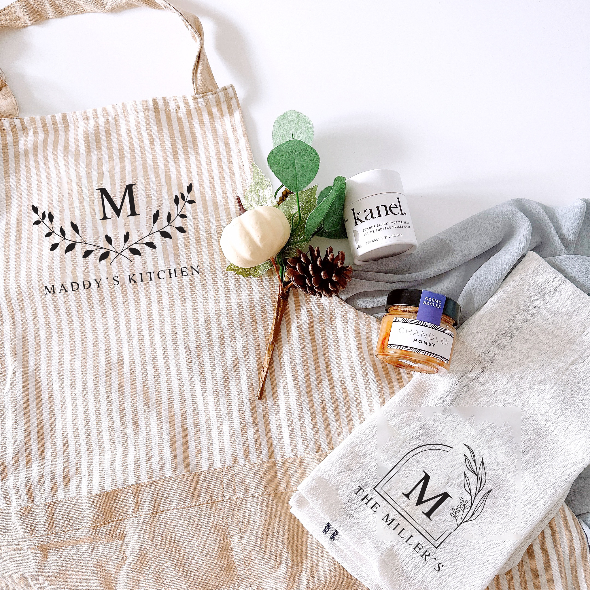 Don't know what to get for a housewarming? Custom tea towels! Perfect for any home! Looks aesthetically pleasing, and gives a warm touch to each one. These open up to include thin blue stripes detailing.