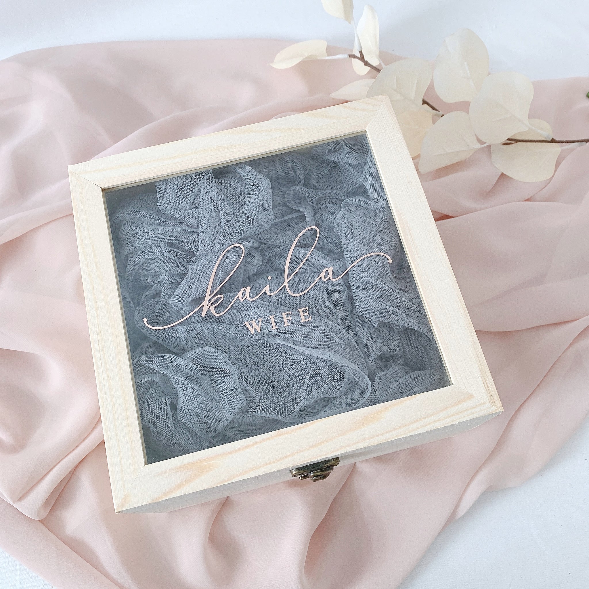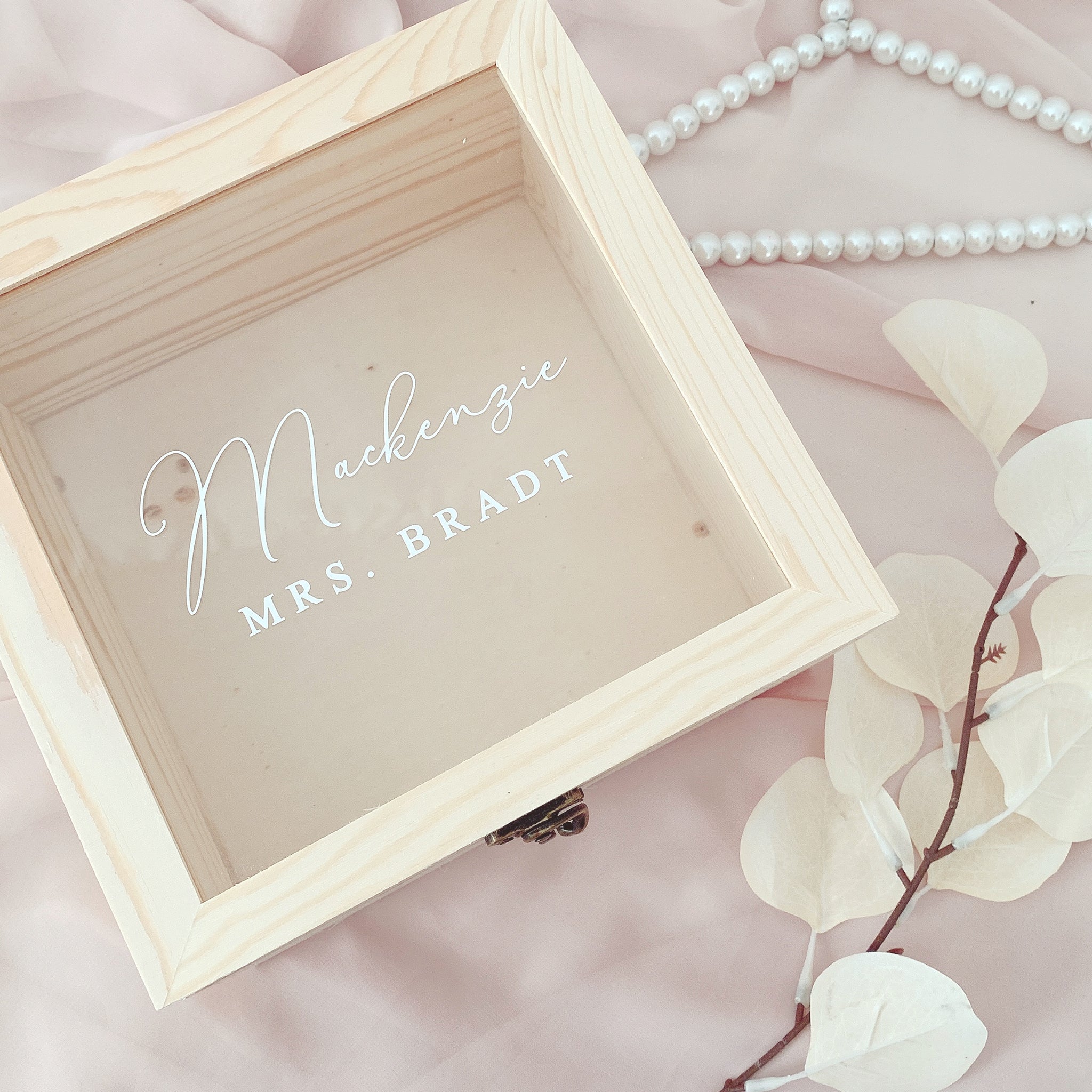 A rustic yet elegant wooden box for the modern chic lover. It features a glass clear top with a metal latch to keep your gifts or memories safe. It is perfect for a keepsake or shadow box.