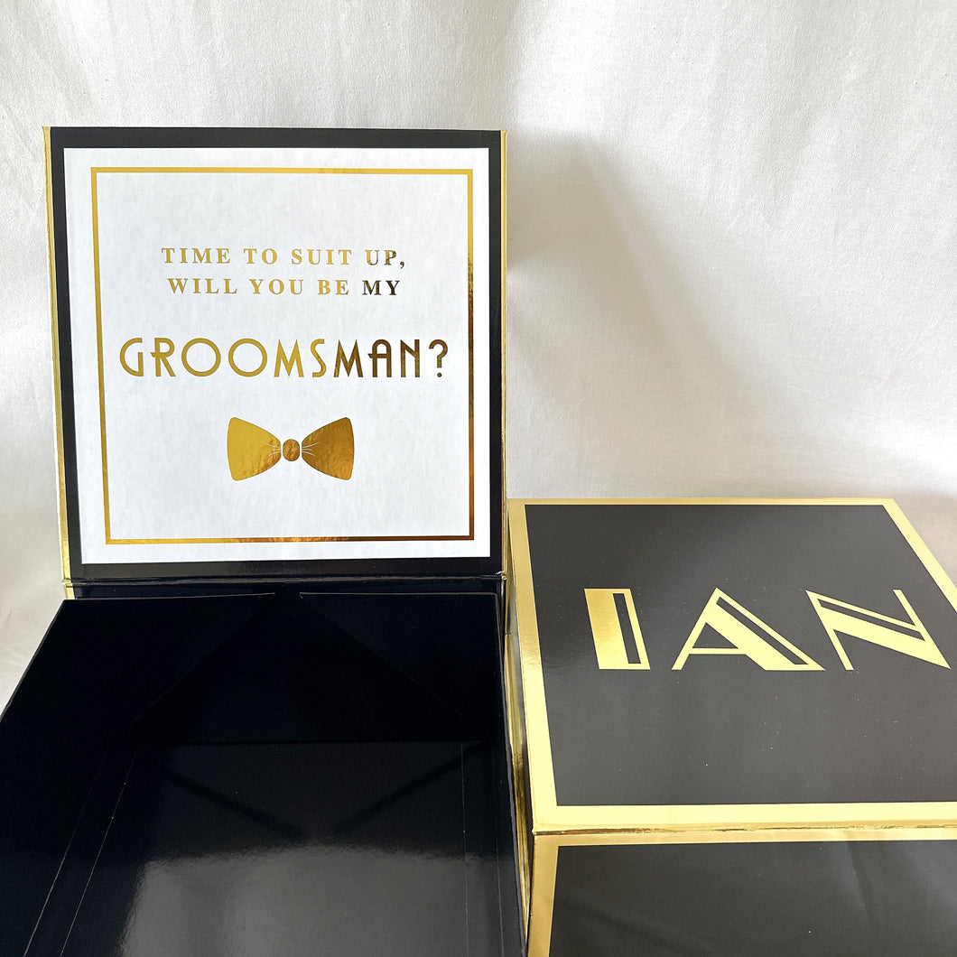 It's here, a personalized and unique groomsman gift box to spoil your bros. This gift box makes a beautiful keepsake and can be personalized to include a name on the front + inside of the lid. Design message & colour cannot be changed for this listing. Only available for Best Man / Groomsman.
