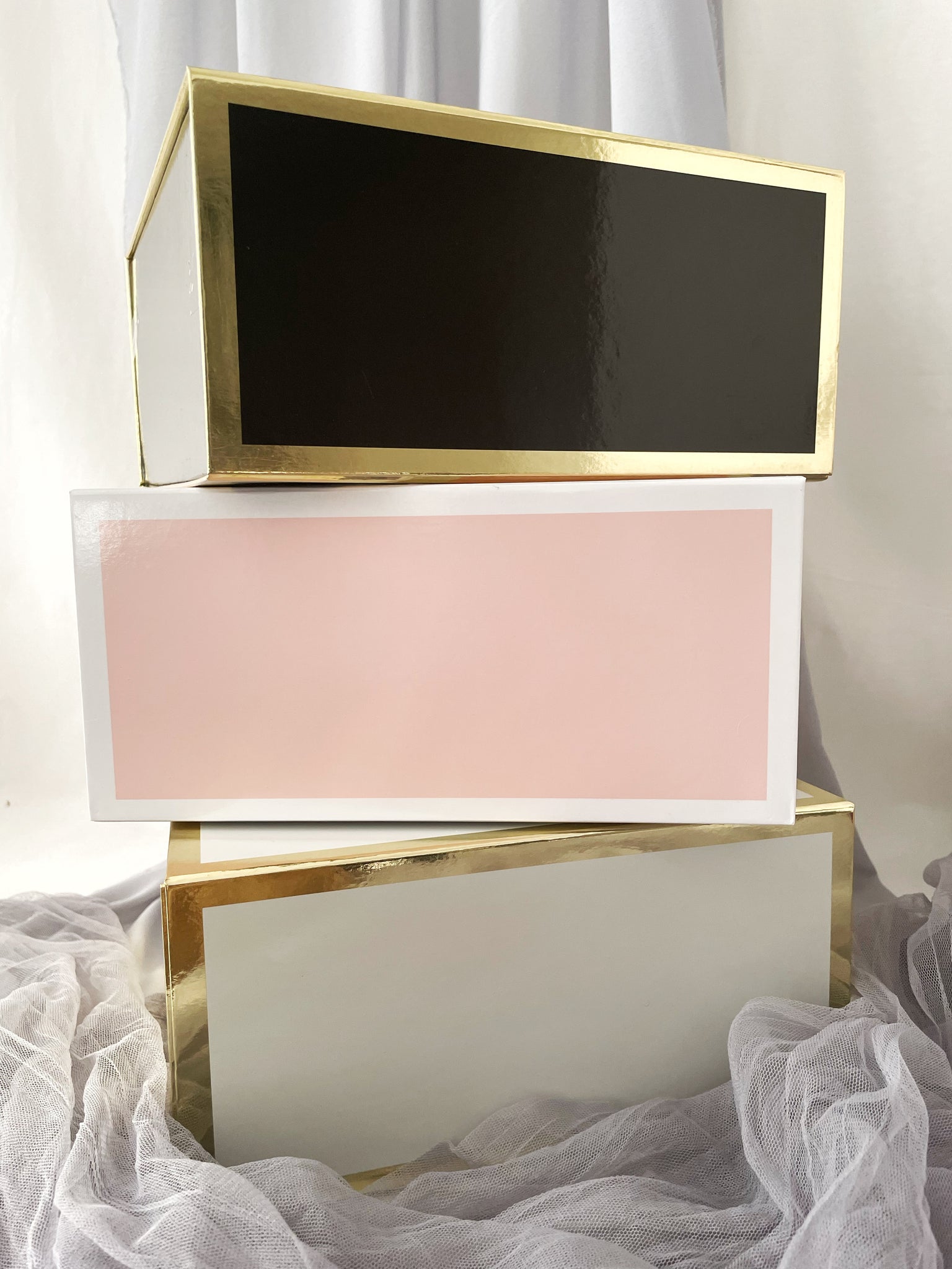 White + Gold Trim box personalization will be done in gold (front) and white (inside).